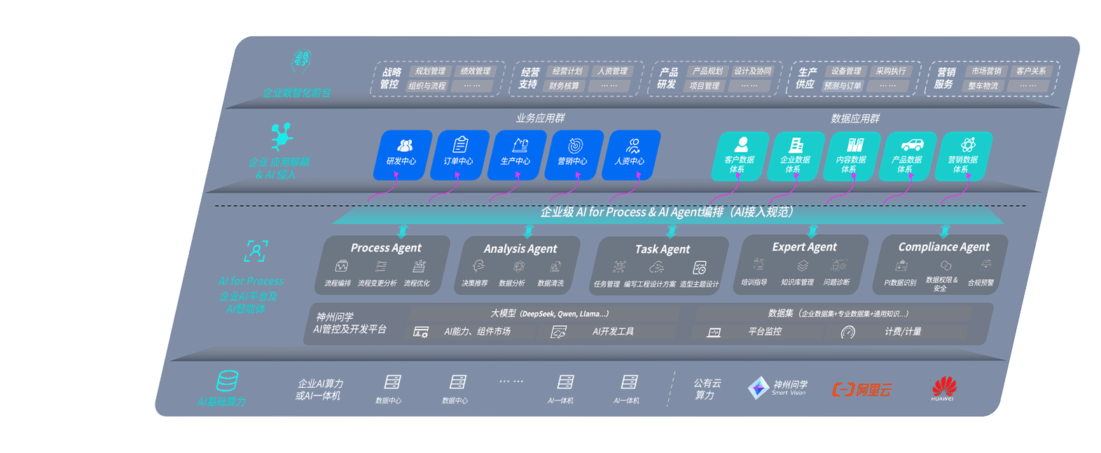 乐天堂官网问学智车解决方案是一套基于AI技术的汽车行业智能化系统,,,覆盖从底层算力到顶层AI应用的全栈方案。。方案由算力层、、模型层和应用层组成:算力层,,,,方案支持多种一体机配置,,具备云端灵活部署、、多云适配以及动态优化计算资源的能力;模型层,,乐天堂官网问学平台版提供了企业级AI应用一站式构建与管理平台,,,支持基于后训练强化技术的汽车企业专属模型的训练、、、评测和运营;应用层,,,,乐天堂官网问学DeepSeek版提供包括超级员工、、、智能招采、、、、智能营销、、智能客服、、、AI for BI等一系列解决方案,,可助力汽车行业实现数字化转型,,,,让管理更智能、、响应更敏捷。。。